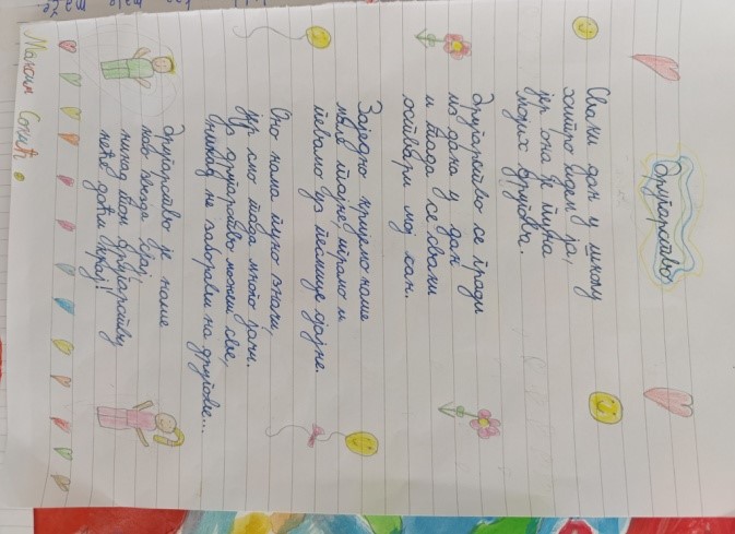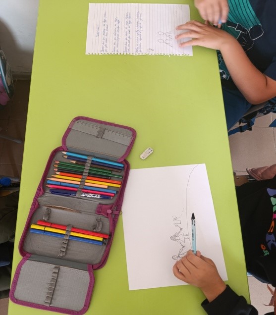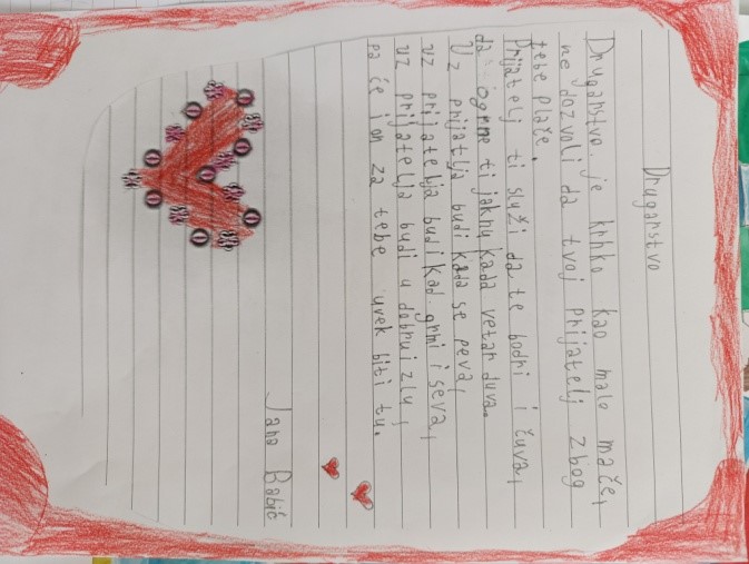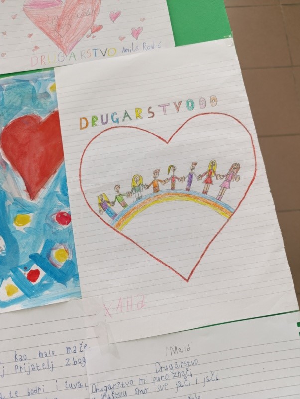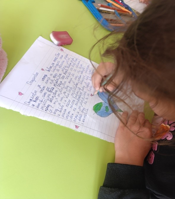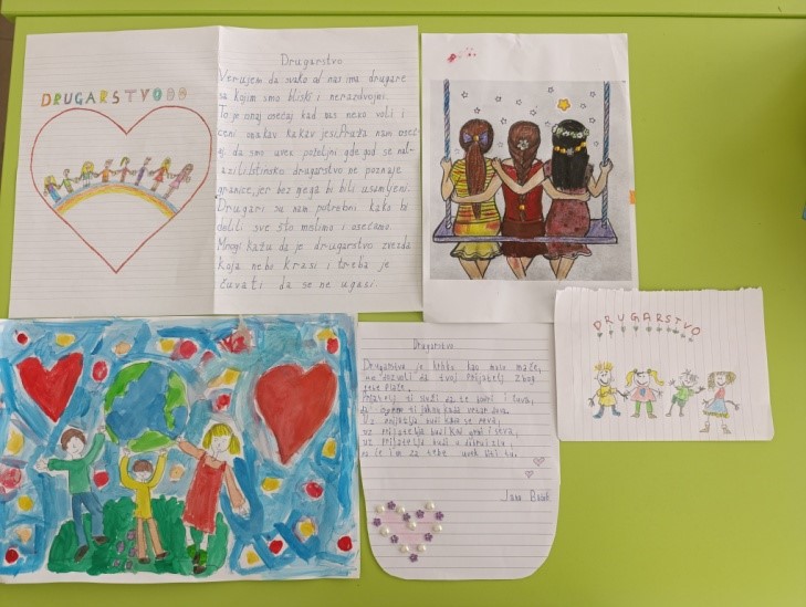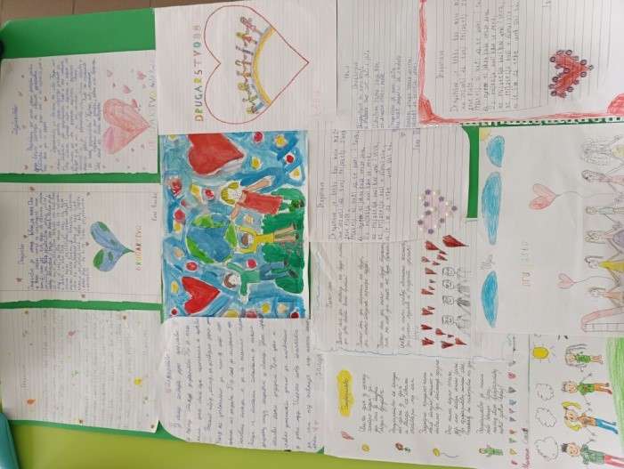 На петом часу, из Часа одељенског старешине, ученици су писали саставе и песме на тему другарства, али и цртали радове.