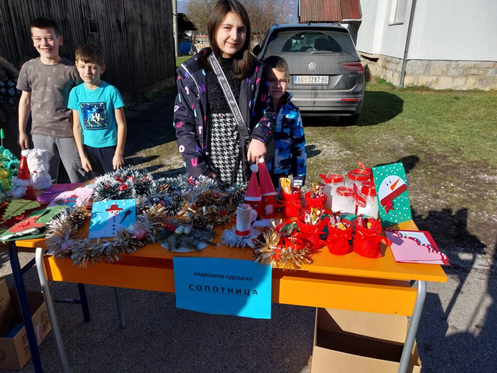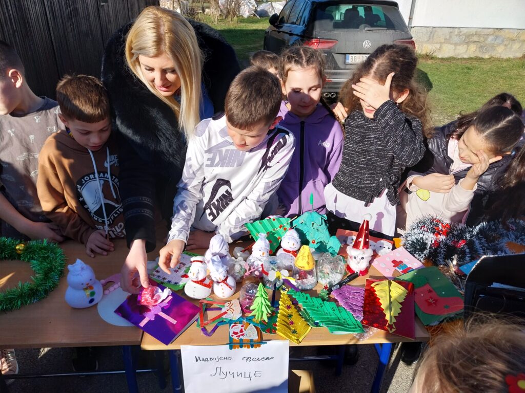 У духу новогодишњих празника и дечије радости, ученици млађих разреда матичне школе као и издвојених одељења Лучице, Дивци и Сопотница су 27.12.2023.год. организовали новогодишњи базар. Искористили су топли и сунчани децембарски дан и своје аранжмане изложили у дворишту школе. Продавали су новогодишње украсе који су правили на часовима слободних активности уз помоћ својих учитељица. Артикли су изазвали велику пажњу купаца, а идеја је било много. Продавале су се новогодишње честитке, јелкице, Деда Мразеви, капице, снежне кугле, чизмице, украсне свеће…На базар су били позвани родитељи, баке и деке ученика као и радници школе, где су имали прилику да разгледају и купе новогодишње украсе које су наши најмлађи припремили. Сваки купац наилазио је на љубазност наших малих продаваца и на њихову посвећеност раду, са циљем да продаја буде што успешнија.