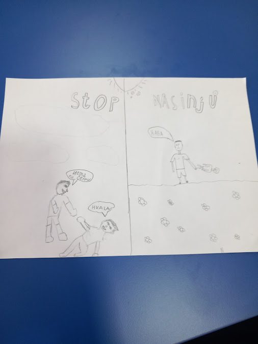 У оквиру сарадње са Центром за социјални рад у нашој школи у понедељак 2. децембра одржане су едукативне радионице на тему Превенција вршњачког насиља са ученицима четвртог и седмог разреда. Реализатори радионица, стручни сарадници Центра за социјални рад Драгана Дробњак и Слађана Дробњак су уз помоћ педагога школе Иване Безаревић разговарали са ученицима о насиљу, облицима насиља и превенцији насиља кроз групни и тимски рад. Ученици седмог разреда су имали прилику да погледају кратак филм о вршњачком насиљу на основу кога се отворила дискусија. Ученици четвртог разреда су послушали песмицу ,,Мисли пре него што поштујеш, не веруј свему што је написано“ и цртали и писали поруке против насиља.