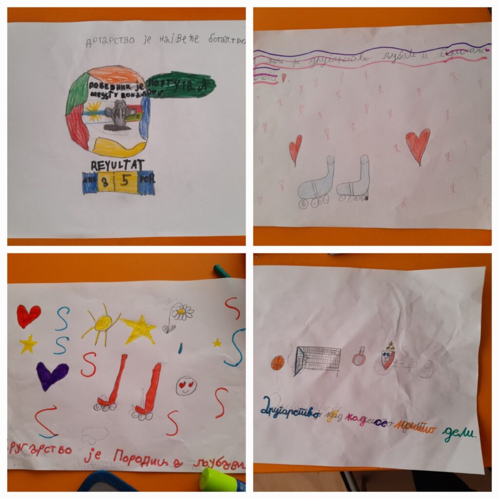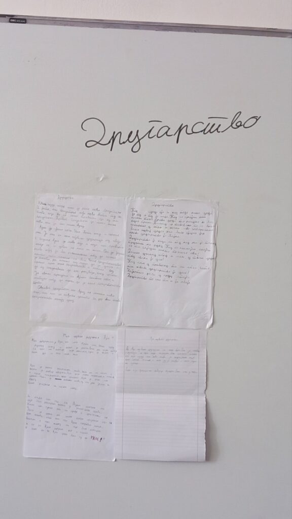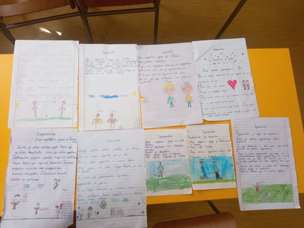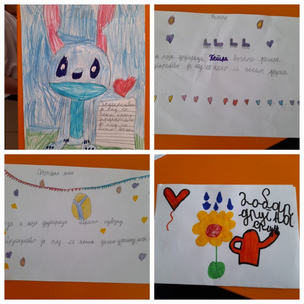 Ученици млађих разреда матичне школе су у понедељак, 5. маја, обележили први дан Недеље сећања и заједништва. Данашњи задатак је био да ученици другог, трећег и четвртог разреда напишу поруке, песме или саставе на тему пријатељства. Ученици првог разреда су цртали омиљене предмете или активности.