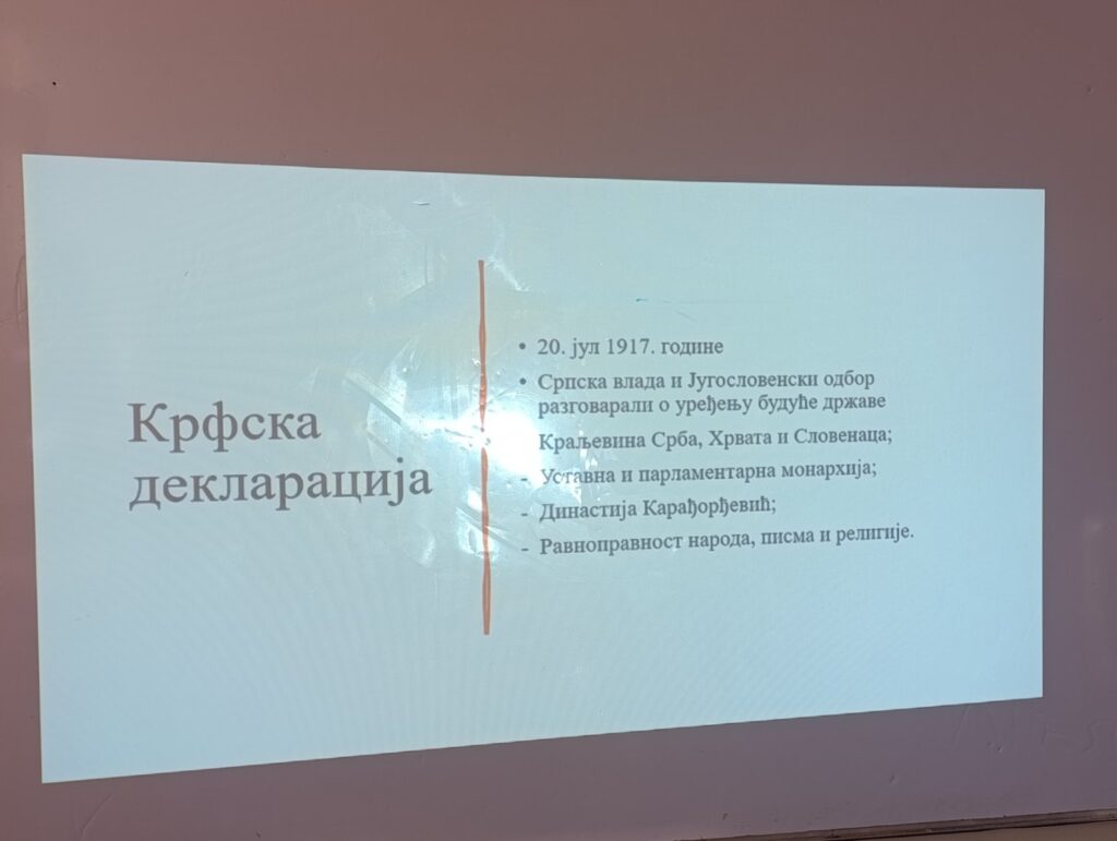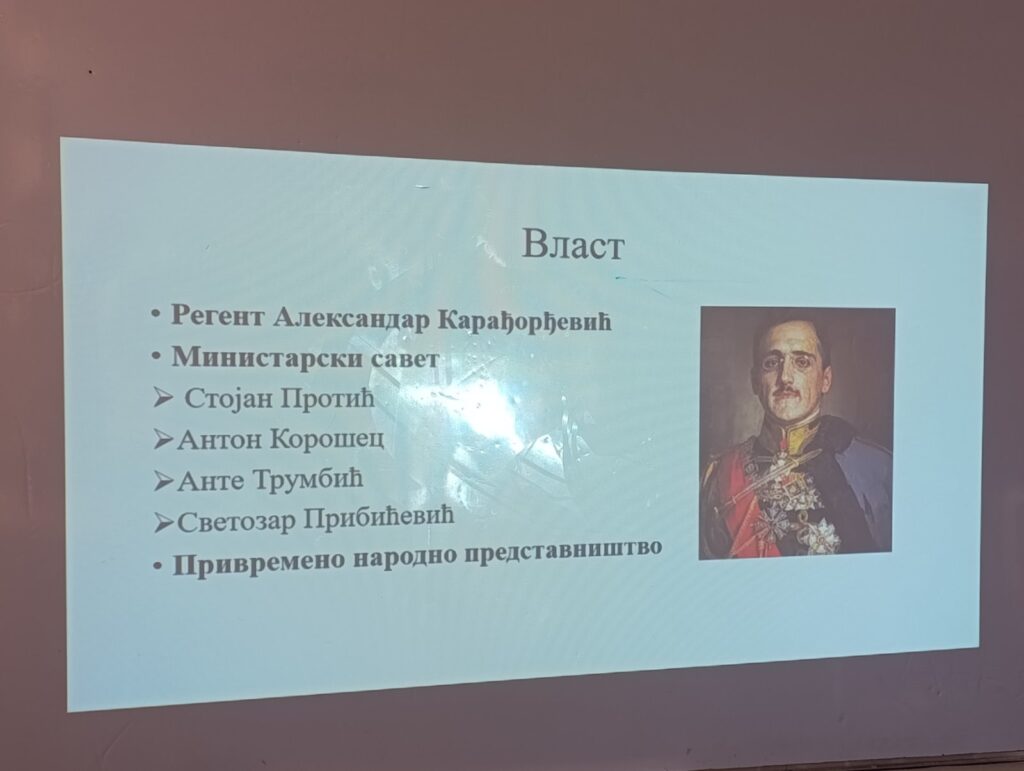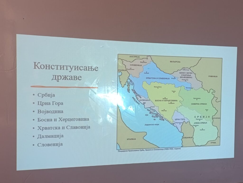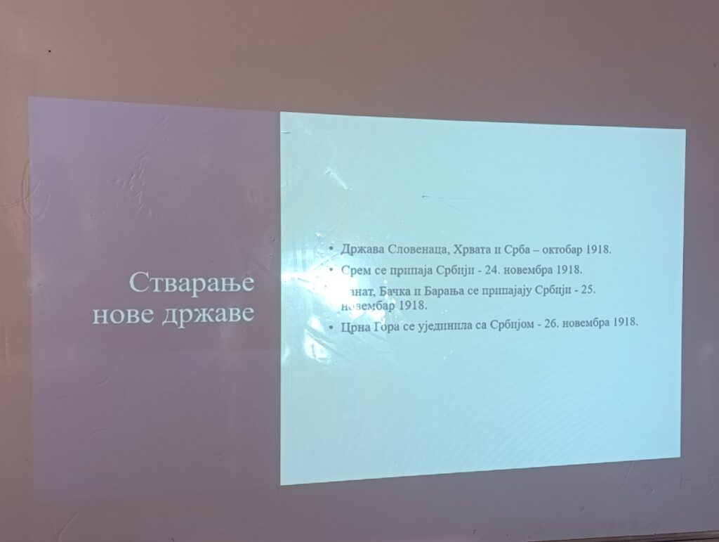 Угледни час из Историје реализован је у четвртак 23. 10. 2025. године у осмом разреду. Реализована је наставна јединица „Стварање Југославије“.