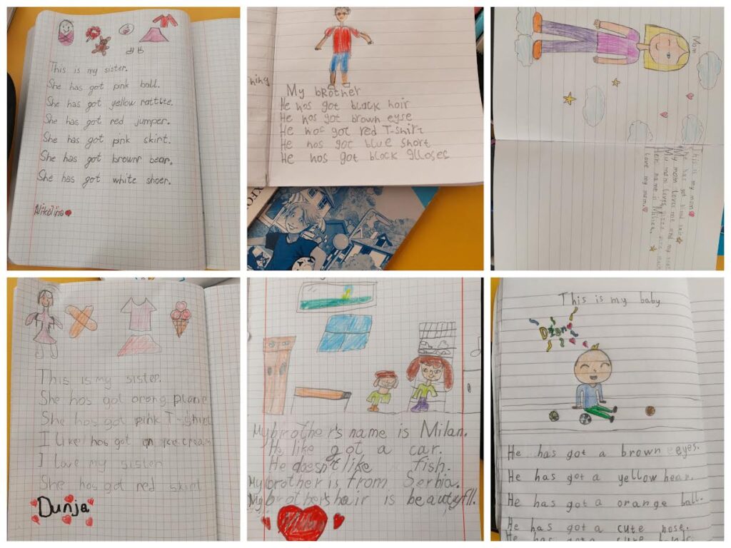 Тема часа енглеског језика је да ученици опишу и нацртају члана породице.