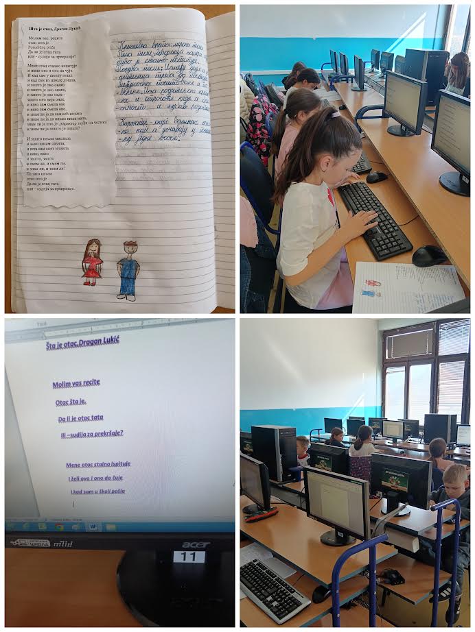 На часу српског језика реализована је обрада песме „Шта је отац“,Драган Лукић. Ученици су разговарали о родитељима и њиховој улози у породици, читали песму и разговарали о њеној поруци и осећањима која буди. Час је допринео развијању разумевања књижевног текста, неговању породичних вредности и подстицању одговорног понашања.
