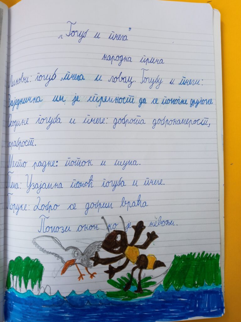 Српски језик наставна јединица : Народна прича „ Голуб и пчела “ – обрада.