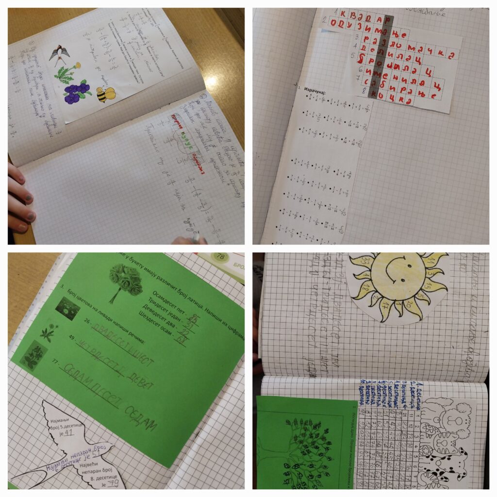 На часу математике, наставне јединице 1. разред Читање и писање бројева до 100 – обрада са учеником је обрађена наставна јединица а задаци на листићима су били у духу весника пролећа, природе, инсеката. У 4.разреду утврђивањем Сабирање и одузимање разломака истих именилаца,садржај тектуалних задатака тематски је прилагођен како текстом тако и изгледом листића у духу пролећа.