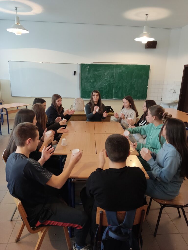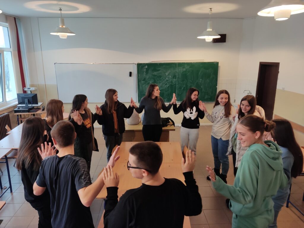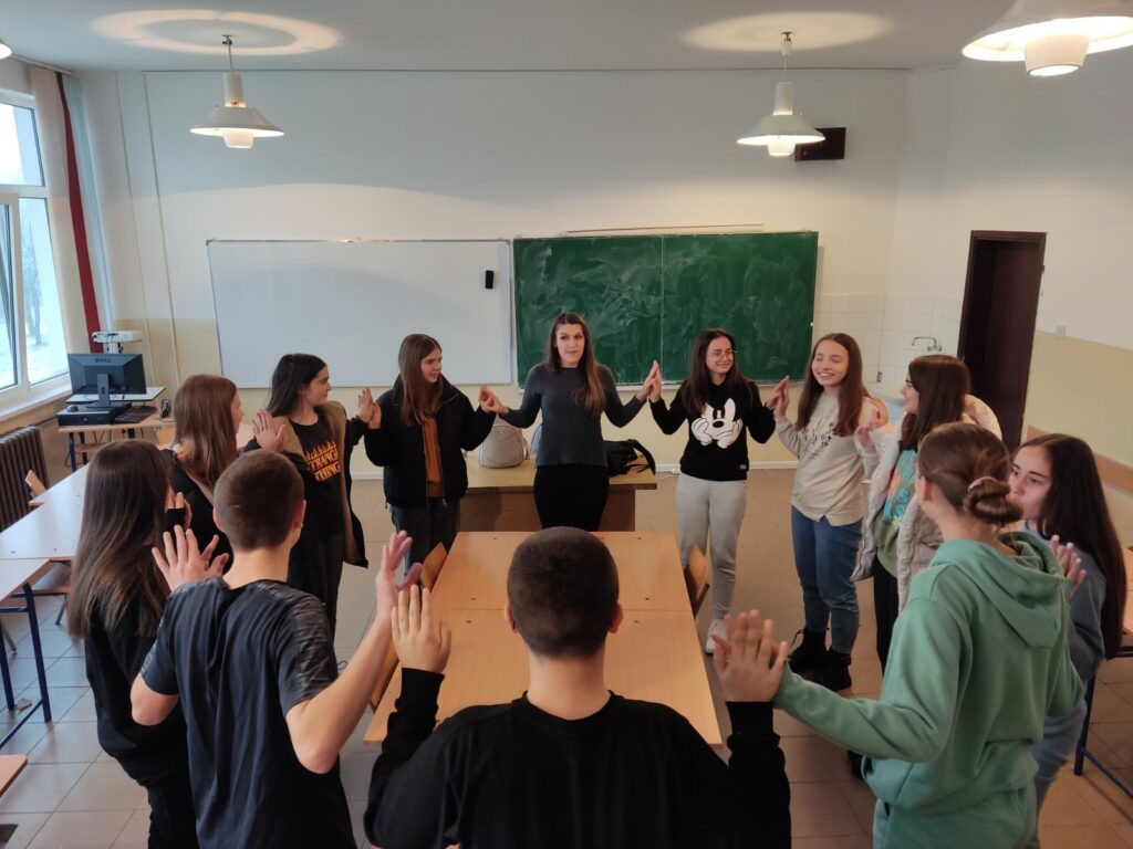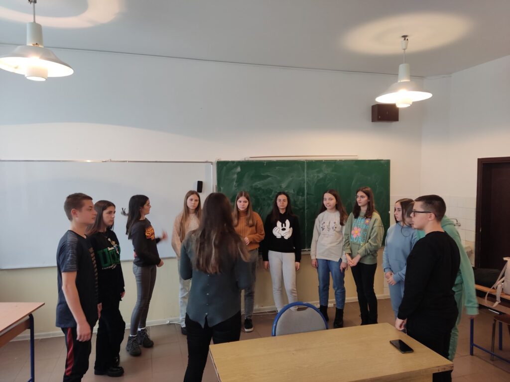 На радионици „Наша мала позорница“ у оквиру пројекта Обогаћени једносменски рад која је одржана у среду, 22.11.2023. године ученици седмог разреда имали су изазовну и креативну прилику да уз помоћ свог тела и покрета истраже и стварају музику. Гост ове радионице била је професорка пријепољске Музичке школе, Дивна Стиковић.