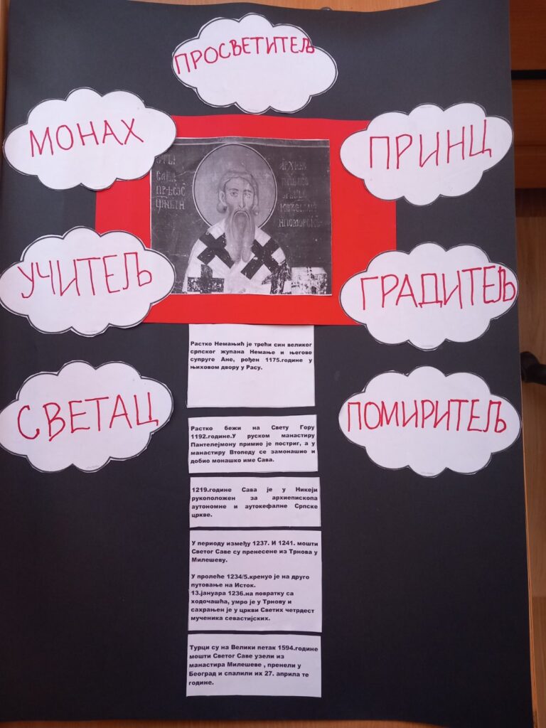 подсетили приче „Свети Сава и ђаци“ а потом кроз игру слагалице која је евалуацију свега онога што су ученици знали о Светом Сави, ученици су показали да поседују солидна знања о Светом Сави, показали су да имају развијен такмичарски дух и жељу за новим знањем.