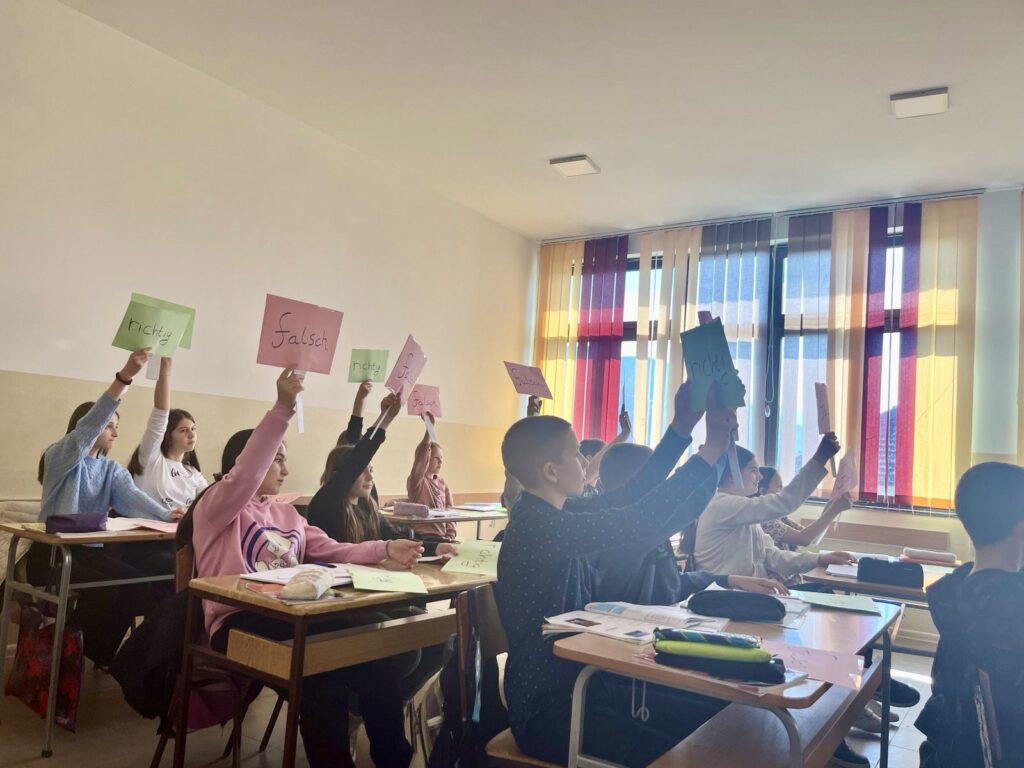 Угледни час из Немачког језика одржан је 18. марта 2024. године и био је посвећен глаголском облику перфекту, обухватајући усмене и писмене вежбе. Ученици су имали прилику да се активно укључе у наставу кроз различите активности.