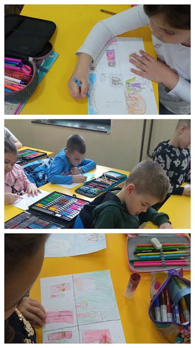 На часу ликовне културе ученици су се бавили темом Слика и реч (стрип и илустрација приче). Упознали су се са основама стрипа, а након приказа стрипа на тему басне, самостално су илустровали бајку Шаренорепа у форми стрипа.