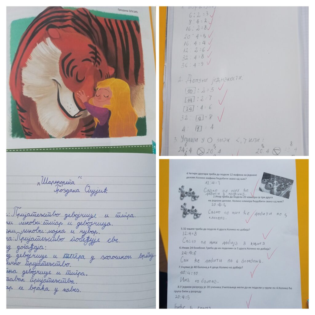 На часу српског језика и књижевности обрађена је бајка Шаренорепа Гроздане Олујић. Ученици су се упознали са ауторком и кроз анализу текста разговарали о карактеристикама бајки. Посебан акценат стављен је на тему бајке – пријатељство између девојчице и тигра – као и на поруку да право пријатељство побеђује све.