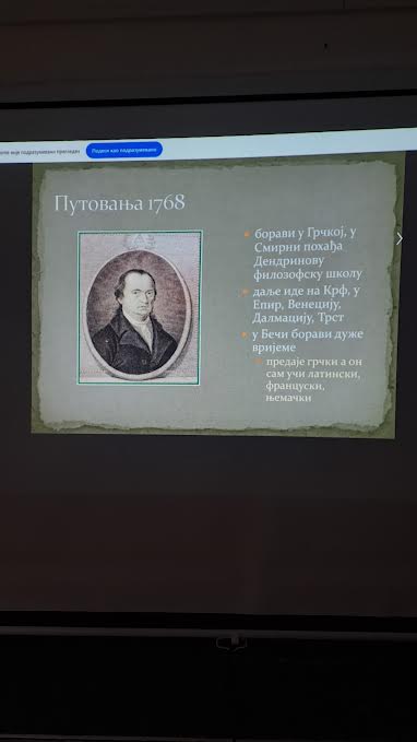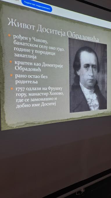 Дани од 10. априла обележавају се разним дешавањима у знак сећања на лик и дело Доситеја Обрадовића – ученичким радионицама, ученичким конкурсима, манифестацијама – под именом Доситејеви дани. У нашој школи ученици шестог разреда су учествовали у изради презентације, упознавању са речима из црквенословенског језика, као и прикупљању Доситејевих цитата и мудрих мисли.