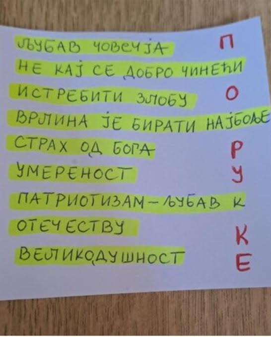 ,,Све што је материјално бива и прође. Оно непролазно је богатство духа, знање и језик сваког народа, та неугасла истина о вечном трајању и онда када вас не буде више”