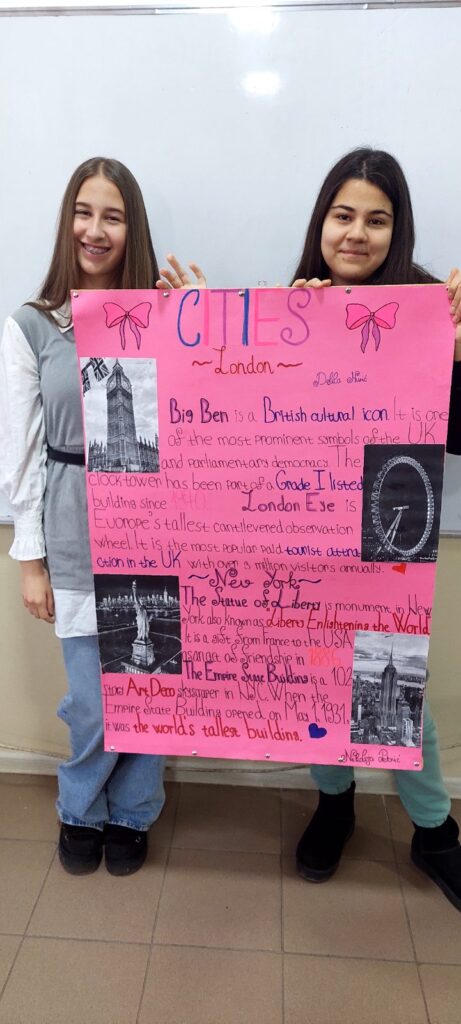На часовима Обогаћеног једносменског рада English corner ученици су објединили учење језика са културом, навикама, традицијом и цивилизацијом енглеског говорног подручја. Једна група имала је задатак да истражи знаменитости градова Cities, а друга група имала је задатак да истражи културу и обичаје енглеског говорног подручја Special days for special people.