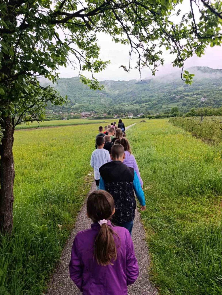Ученици трећег разреда матичне школе, данас су час из спрског језика имали у природи. Обзиром да нам је пролеће одавно стигло, на путу до школске баште, разговарали су о томе како изгледа дрвеће, ливаде, цвеће, какво нам је време и које су животиње дошле у наше крајеве.