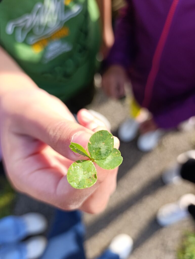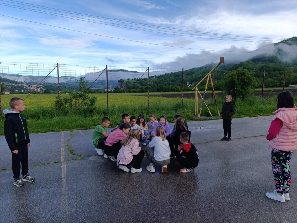 Затим су направили круг и играли игру Глуви телефони, а касније На слово. Први ученик каже реч на слово А, следећи на Б и тако у круг. Онај који погреши слово, улази у круг. У повратку до школе, ученици су имали задатак да пронађу детелину са четири листа.