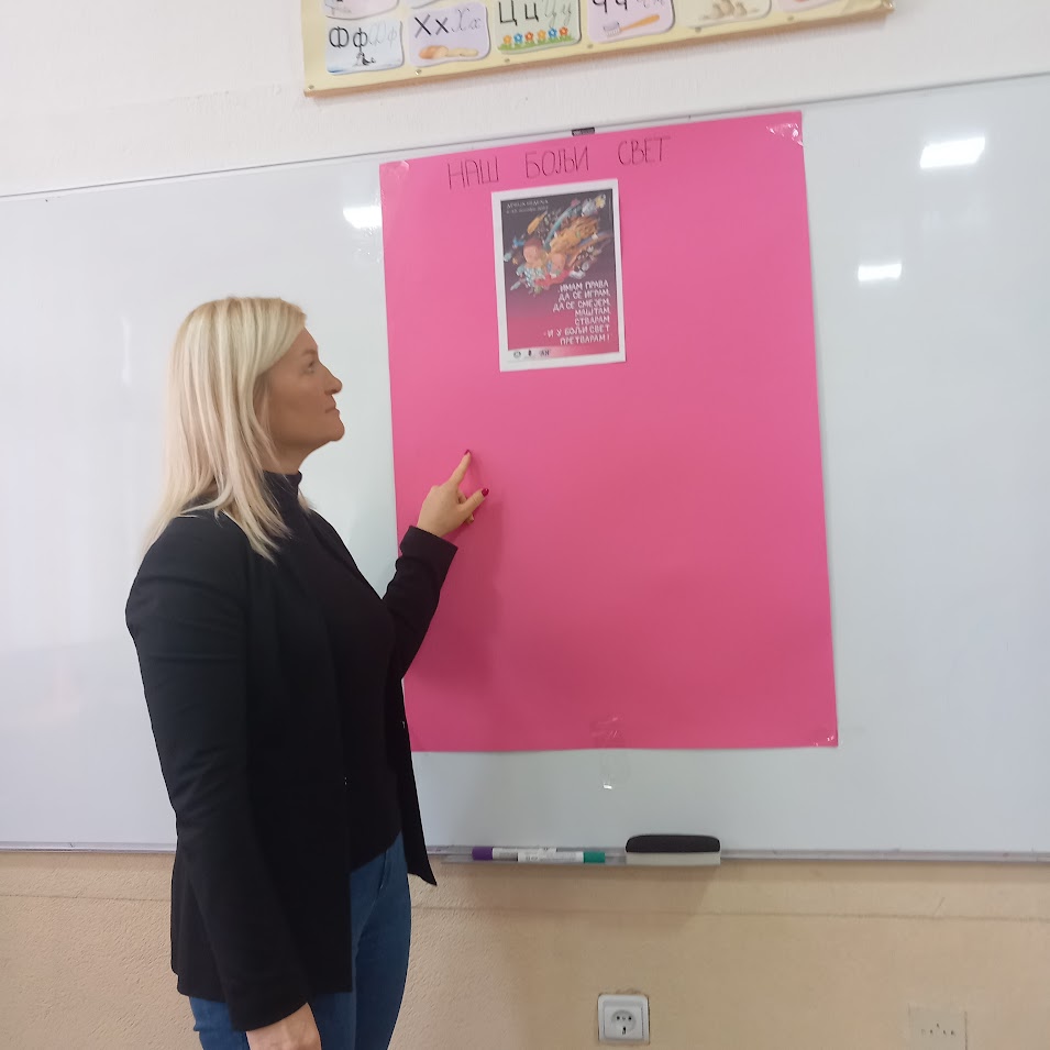 У складу са слоганом педагог школе Ивана Безаревић реализовала је радионицу у другом разреду ,,Мој свет из маште“ и радионицу у четвртом разреду ,,Писмо свету који желим“ са циљем постицања позитивних емоција и осећаја да свако дете може допринети бољем свету, као и развијања одговорности и емпатије.